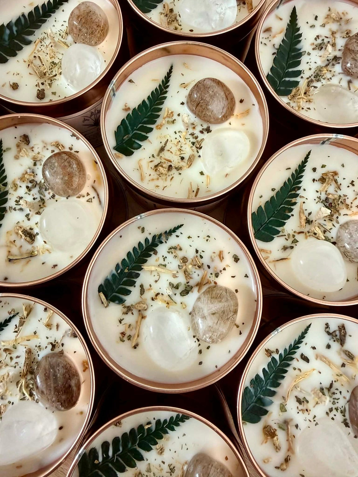Chaque cire est infusée de minéraux et de plantes de sorcière, choisies pour leurs énergies en harmonie avec la saison et vos intentions. Lorsque le feu les libère, leurs pouvoirs se muent pour soutenir votre intention, et leurs énergies s’élancent dans l’air comme un sortilège invisible.