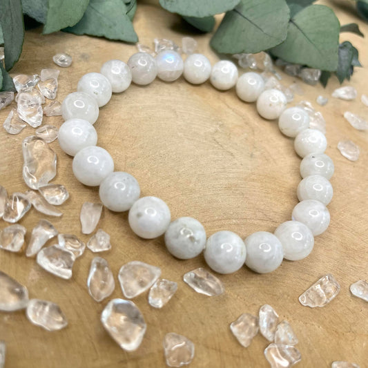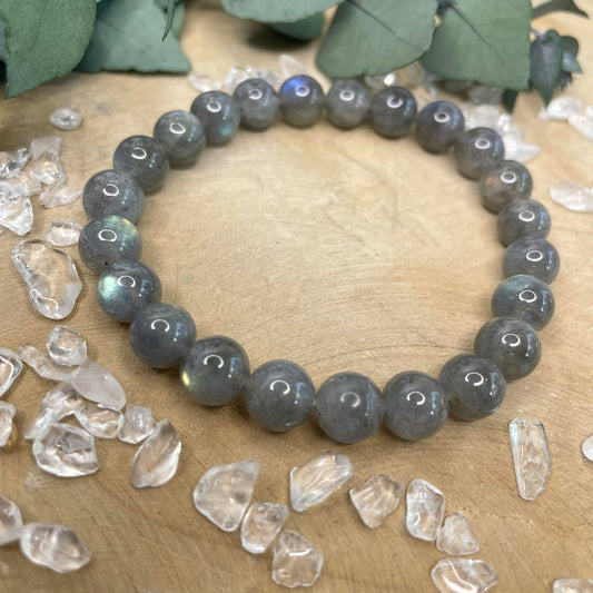 Bracelet Pierre de lune blanche, Labradorite blanche, Péristérite 8 mm