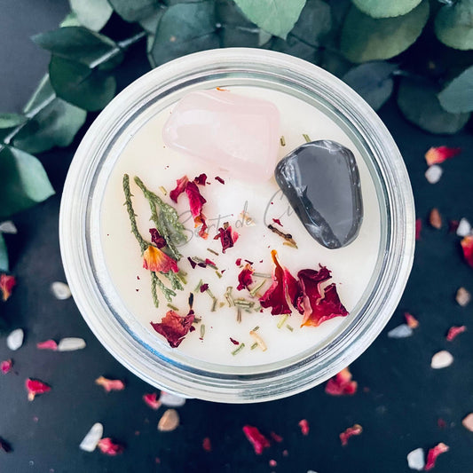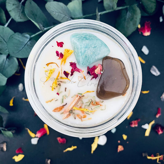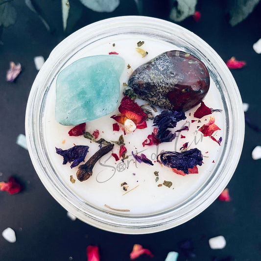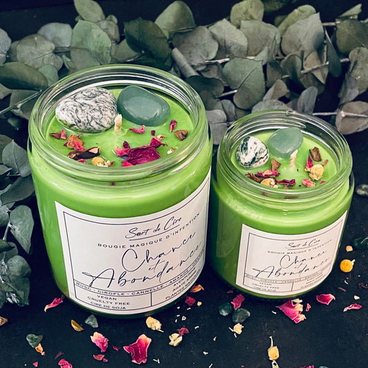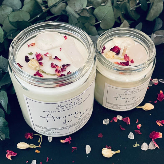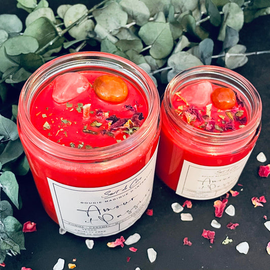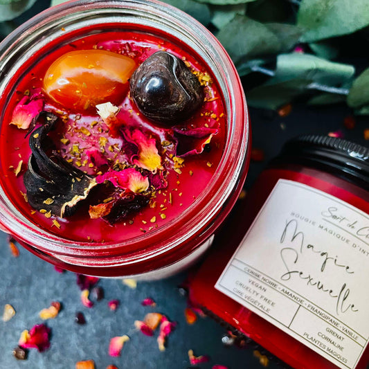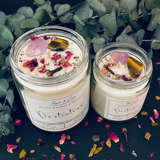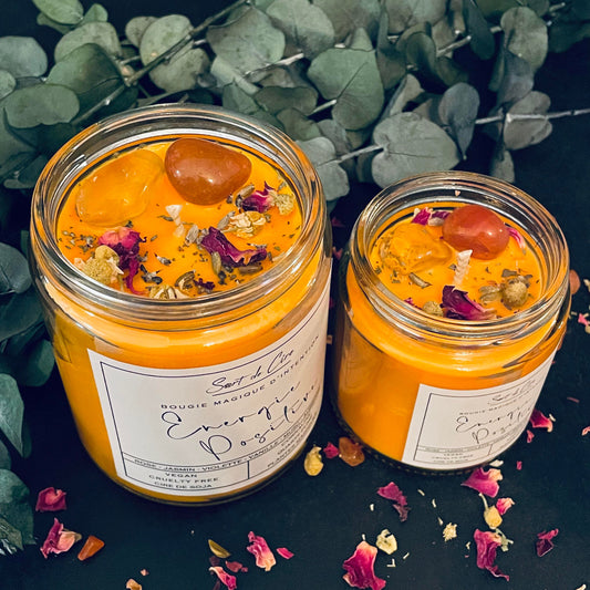 Découvrez la magie d'une atmosphère enchanteresse chez vous, grâce à notre collection de bougies réalisées à la main avec intention, mêlant harmonieusement minéraux et plantes sélectionnées en fonction des correspondances magiques pour matérialiser vos intentions et ensorceler votre quotidien. Offrez-vous une expérience sensorielle et spirituelle unique.