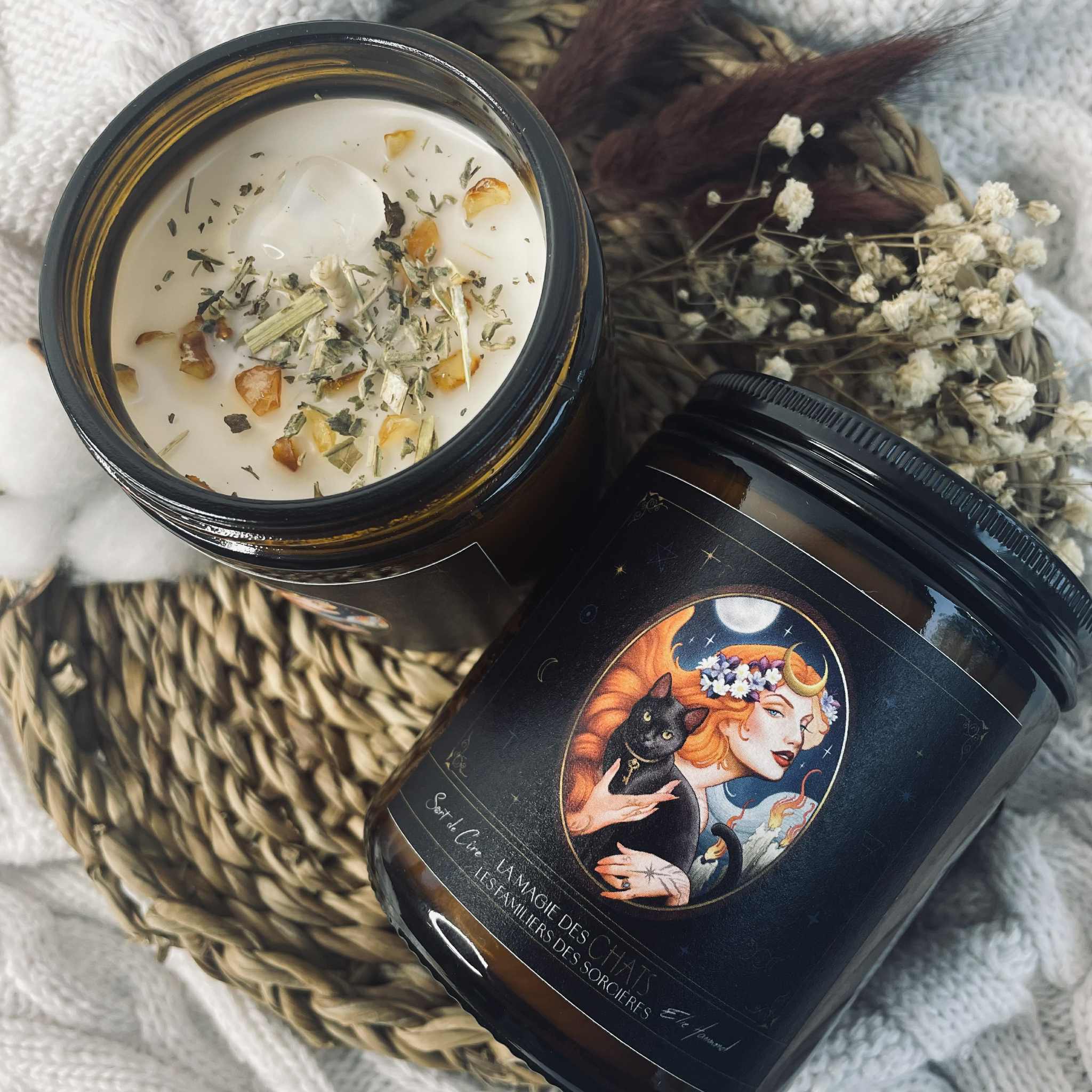 Collection la magie des chatsInspirés de l’énergie des félins, cette collection vous invite à vous reconnecter à l’instinct, à l’intuition et aux mondes invisibles. Chaque bougie est pensée pour éveiller votre sensibilité subtile, renforcer votre protection et vous harmoniser à cette force libre, indépendante et profondément spirituelle.