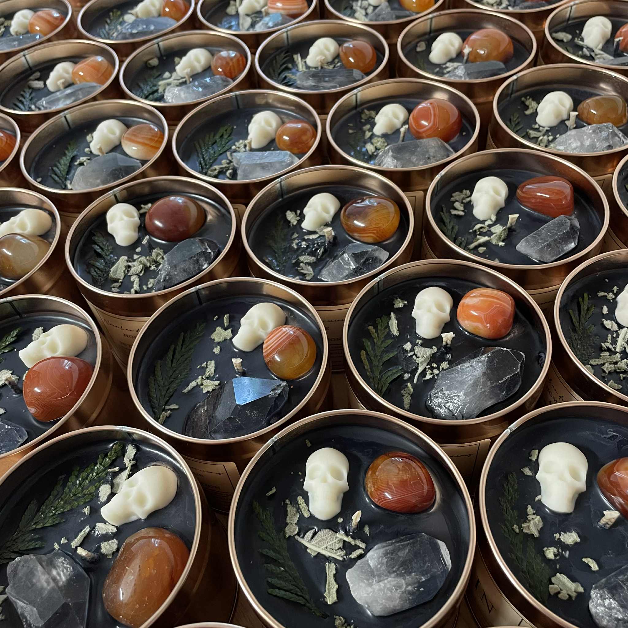 Découvrez la magie d'une atmosphère enchanteresse chez vous, grâce à notre collection de bougies réalisées à la main avec intention, mêlant harmonieusement minéraux et plantes sélectionnées en fonction des correspondances magiques pour matérialiser vos intentions et ensorceler votre quotidien. Offrez-vous une expérience sensorielle et spirituelle unique.