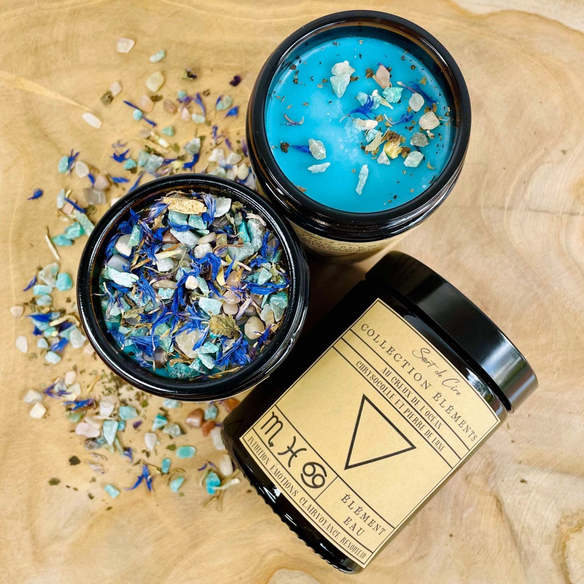 Collection élémentsInspirés des forces primitives de la nature, elles vous invitent à vous reconnecter à l’Eau, au Feu, à l’Air et à la Terre à travers le parfum et l’intention. Chaque bougie est pensée comme un pont sensoriel entre votre espace et les énergies élémentaires, pour éveiller votre puissance intérieure et vous harmoniser aux cycles naturels.