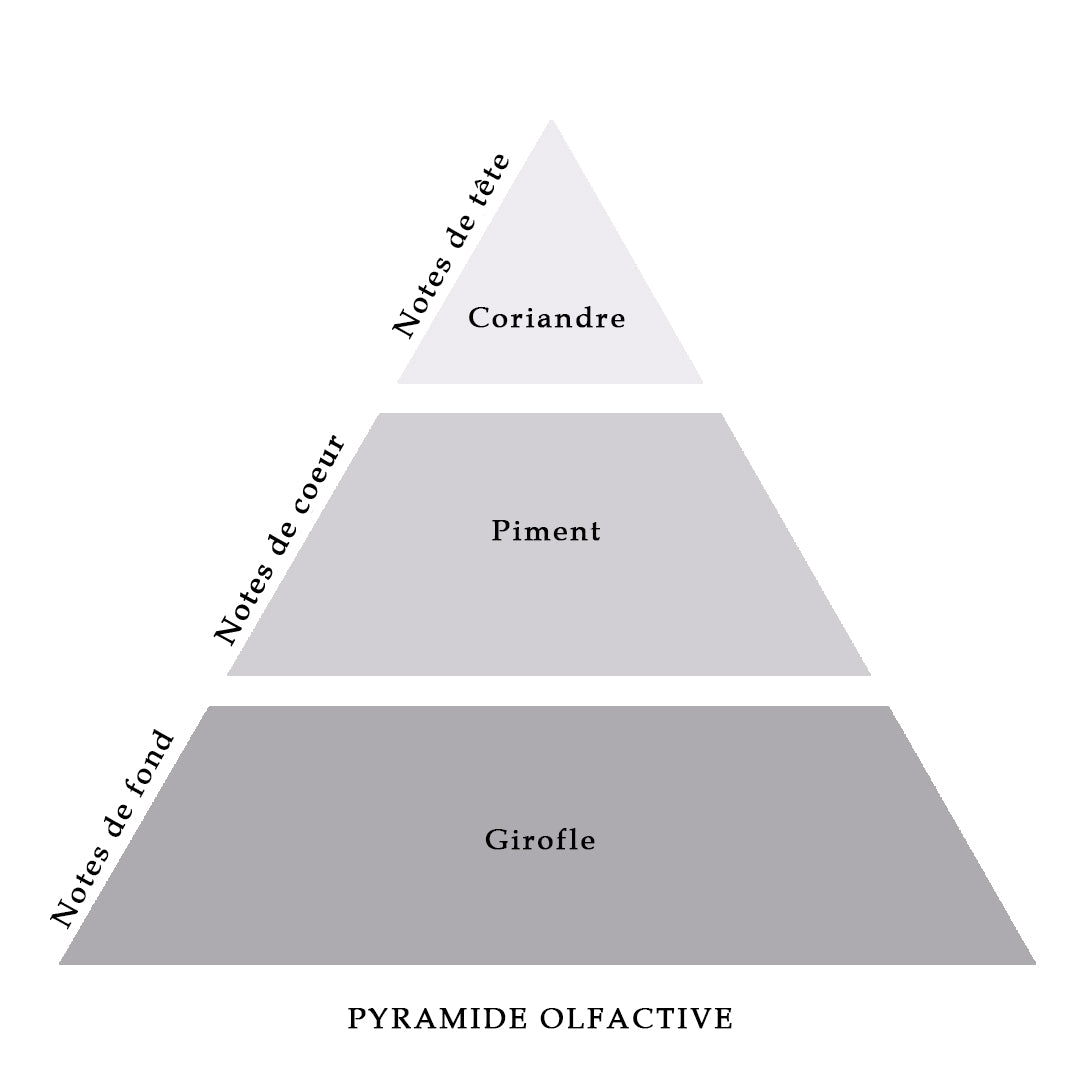 Laissez-vous enflammer par cette fragrance chaude et envoutante, un véritable hommage à l'élément Feu. Dès les premières notes, la coriandre épicée vous enveloppe, éveillant vos sens avec intensité. Le cœur puissant du piment d'Espelette révèle une chaleur vibrante, tandis que la base de girofle ajoute une profondeur enflammée.