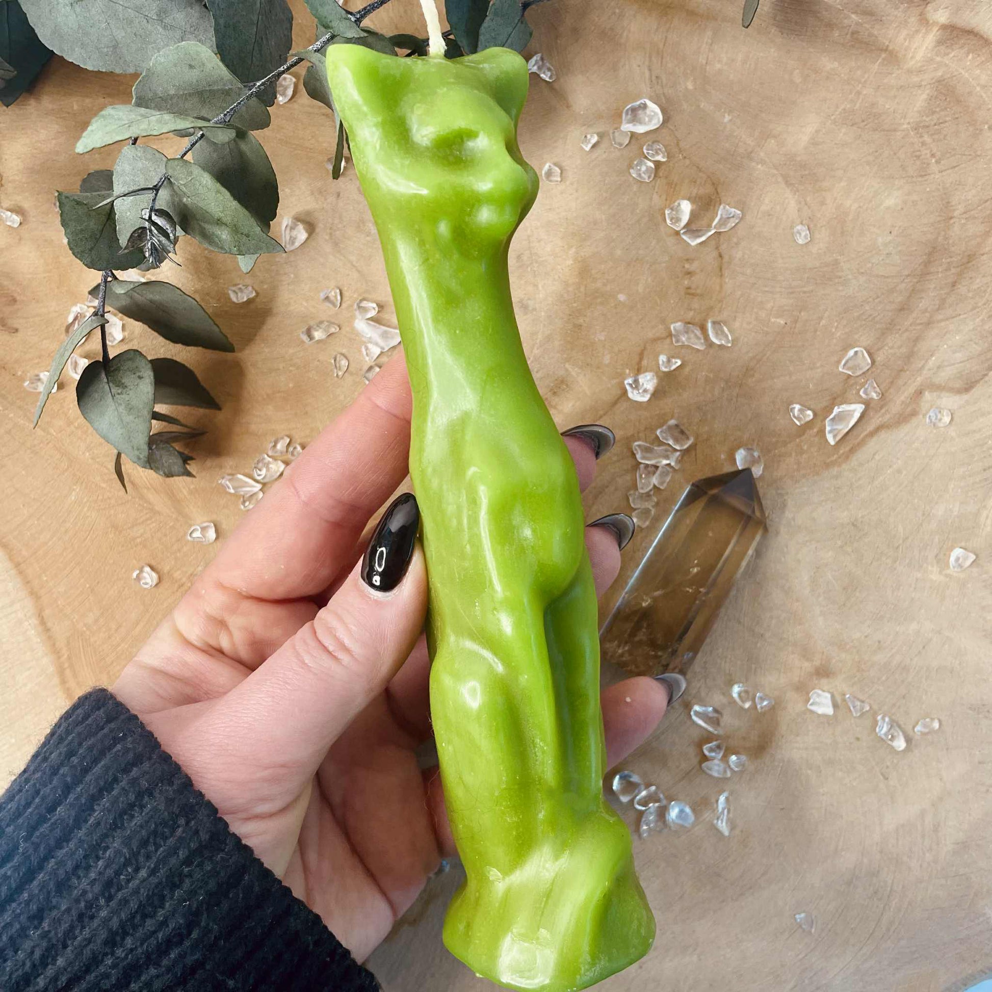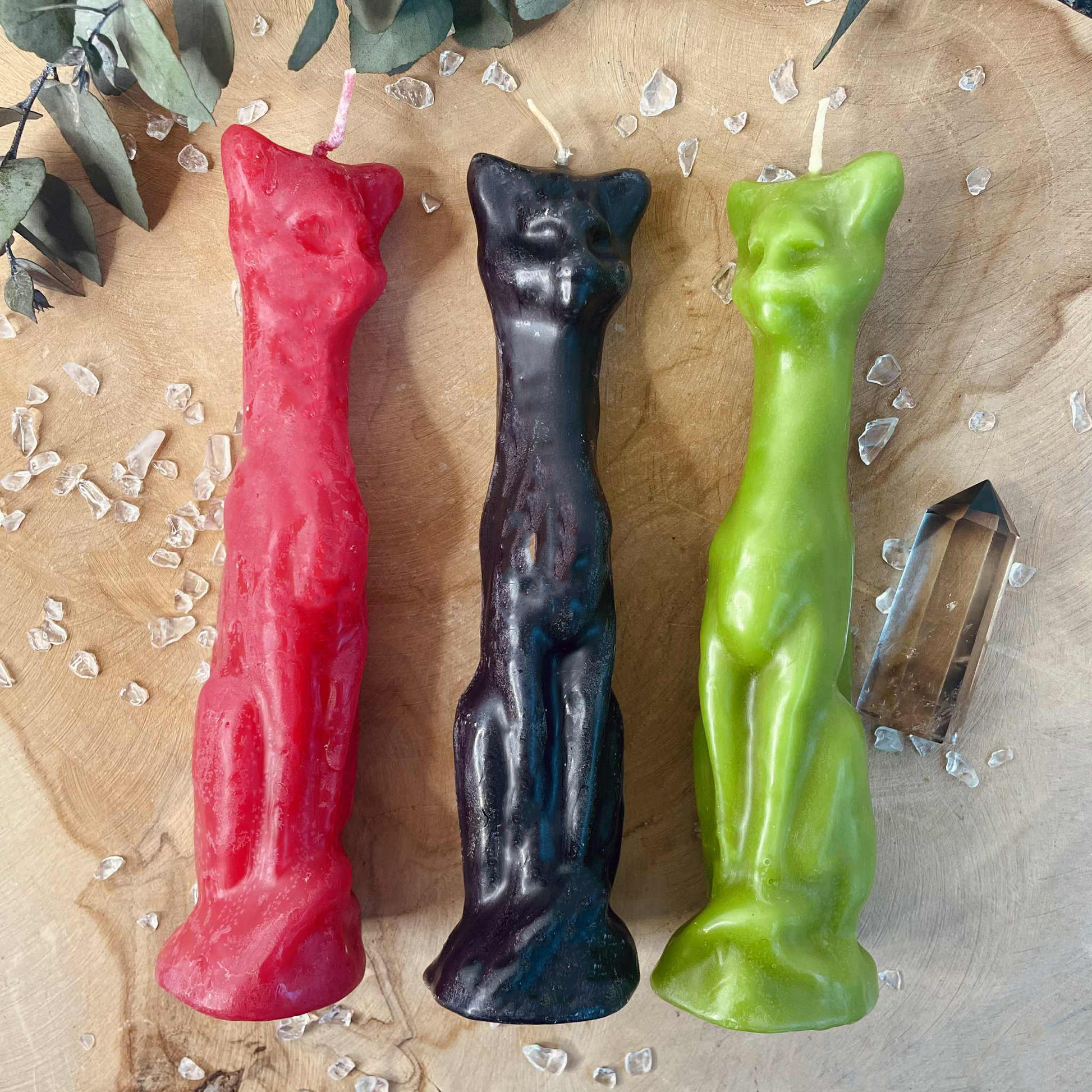Les bougies figuratives en forme de chat, sont des outils ésotériques puissants, profondément liés à l’instinct, à la magie animale et aux énergies subtiles de protection. Inspirées de l'esprit animal du chat, elles incarnent la liberté sauvage, l’indépendance, l’intuition aiguisée et la vigilance territoriale.