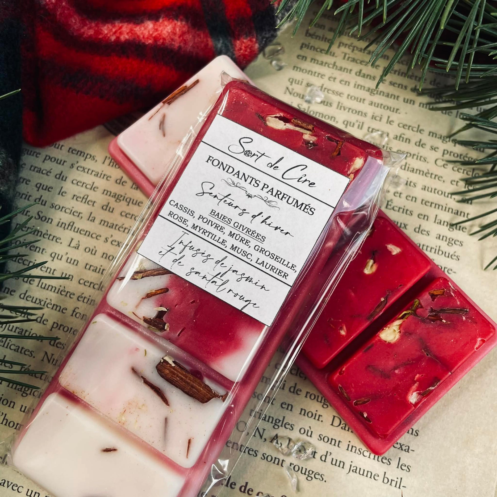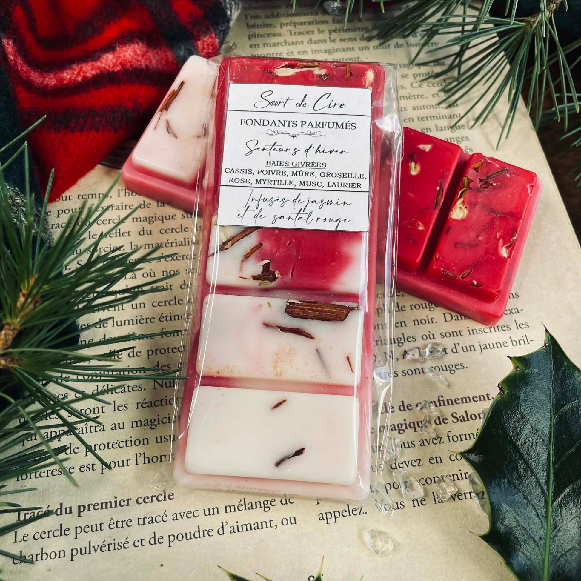 Chaque tablette de fondants parfumés est infusée de plantes de sorcière, choisies pour leurs énergies en harmonie avec la saison et vos intentions. Lorsque la flamme les libère de la cire pailletée, leurs effluves se muent pour soutenir votre intention, et leurs énergies s’élancent dans l’air comme un sortilège invisible.