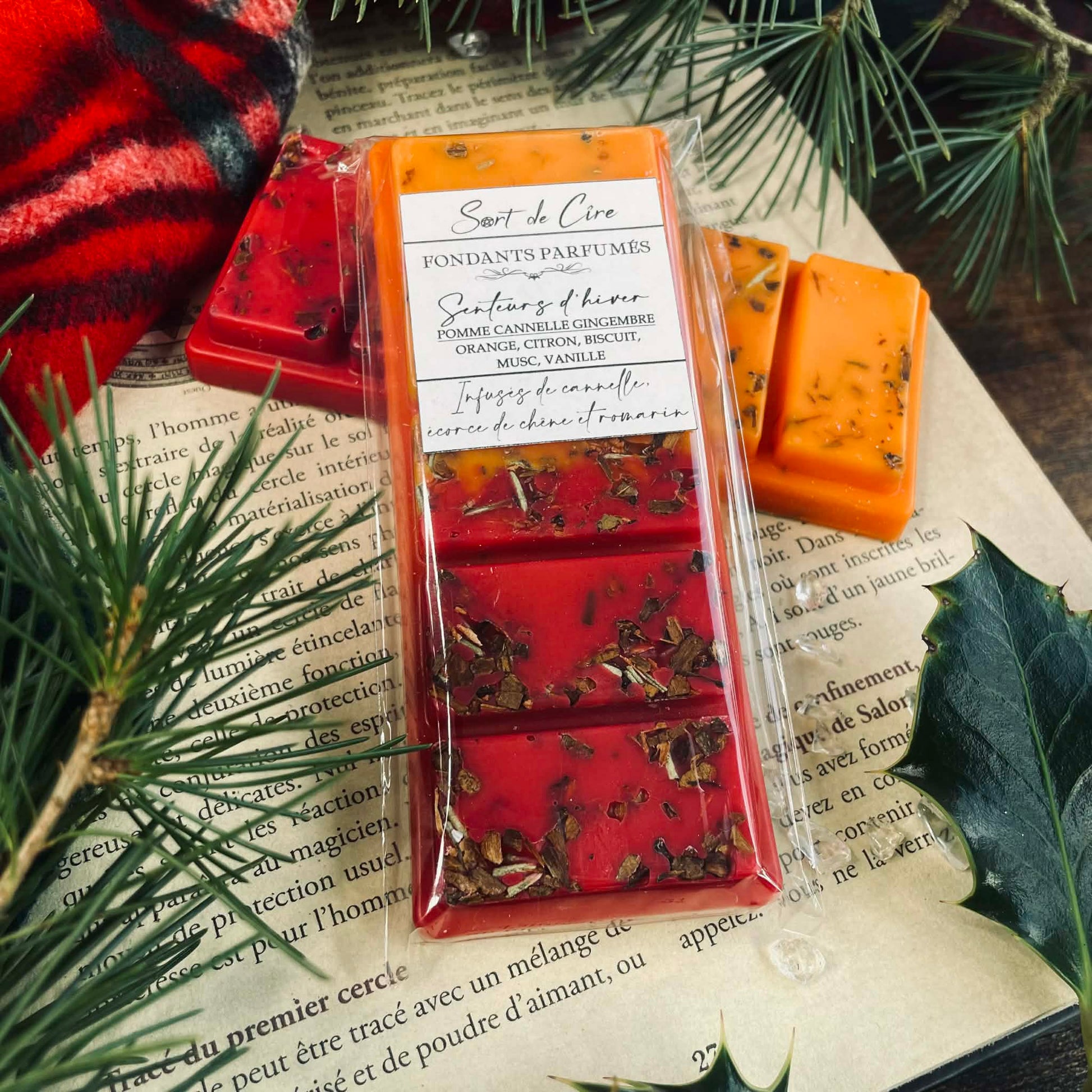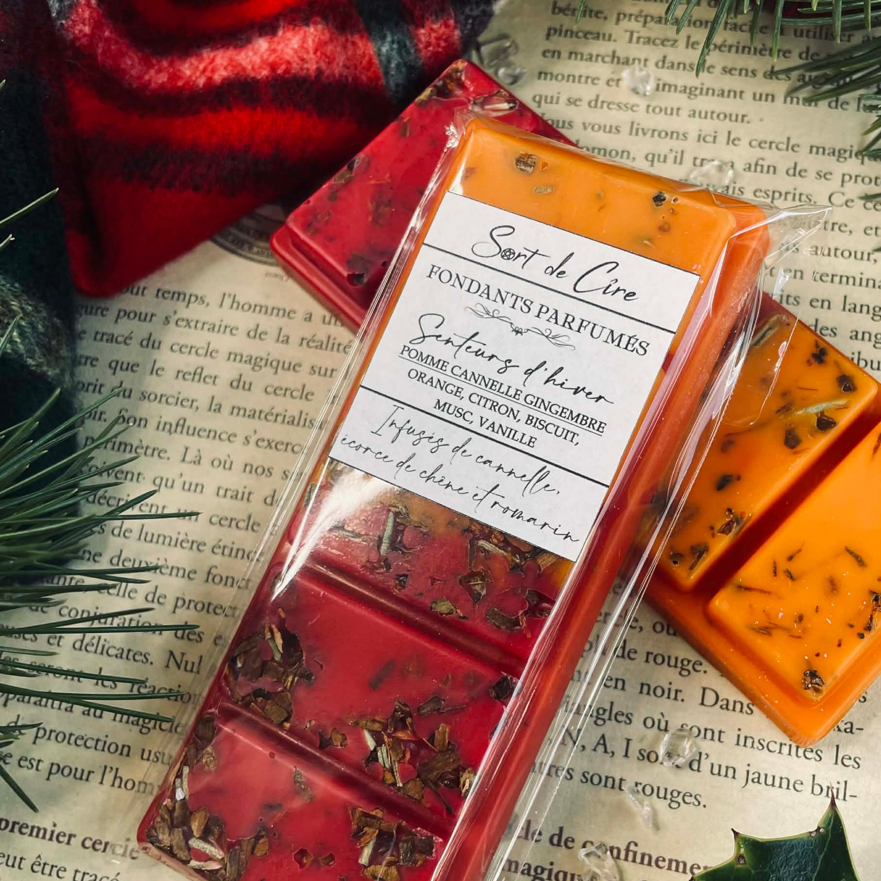 Chaque tablette de fondants parfumés est infusée de plantes de sorcière, choisies pour leurs énergies en harmonie avec la saison et vos intentions. Lorsque la flamme les libère de la cire pailletée, leurs effluves se muent pour soutenir votre intention, et leurs énergies s’élancent dans l’air comme un sortilège invisible.